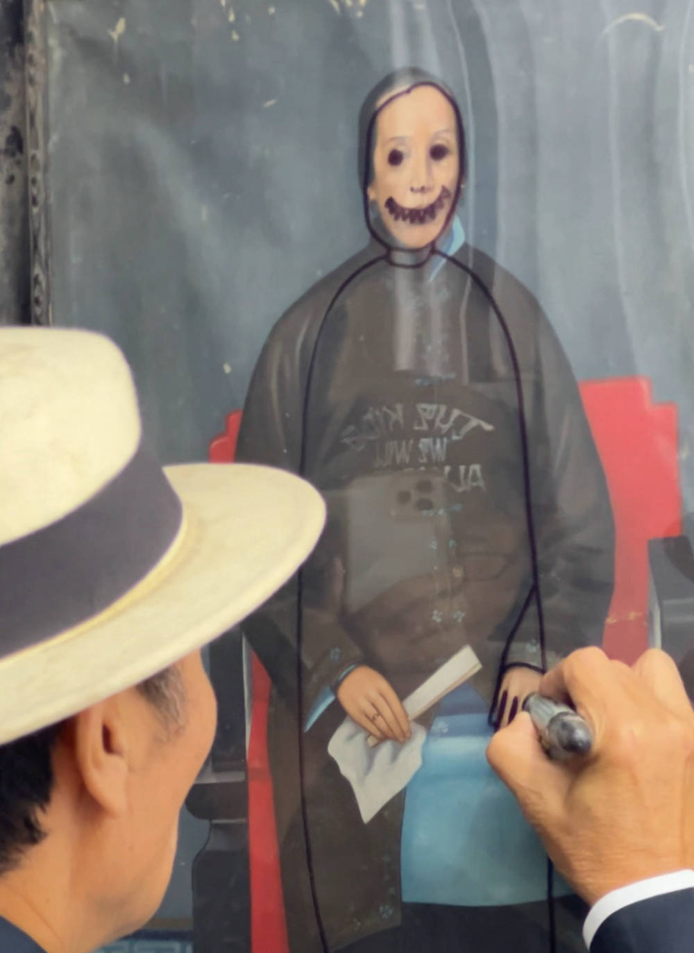 百年前艺术家和当代艺术家在玻璃板上的对话:油画上的亚克力玻璃板是未被定义的空间,艺术家在上面嵌套、交织、叠加他的世界。