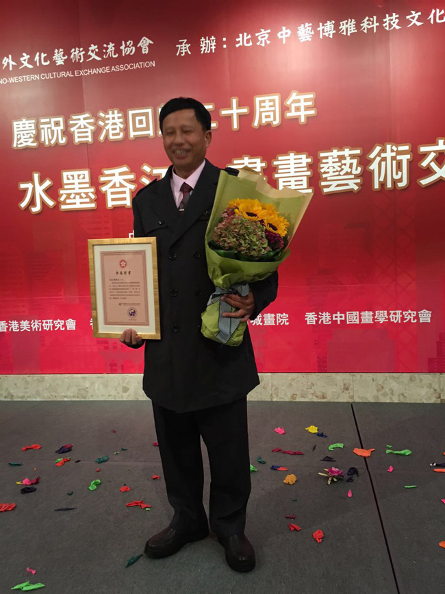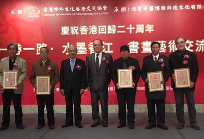 2017年11月22日下午,由香港中外文化艺术交流协会、北京中艺博雅科技文化有限公司主办的“庆祝香港回归二十周年 一带一路 水墨香江——书画艺术交流展”,在香港沙田大会堂展览厅正式拉开帷幕。