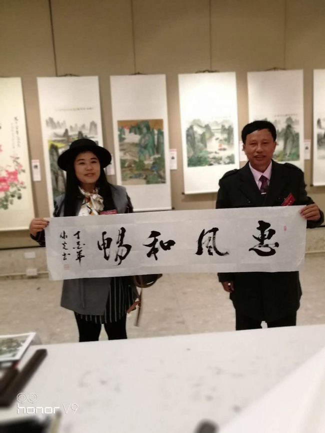 郑伟光(左)与参展艺术家代表合影