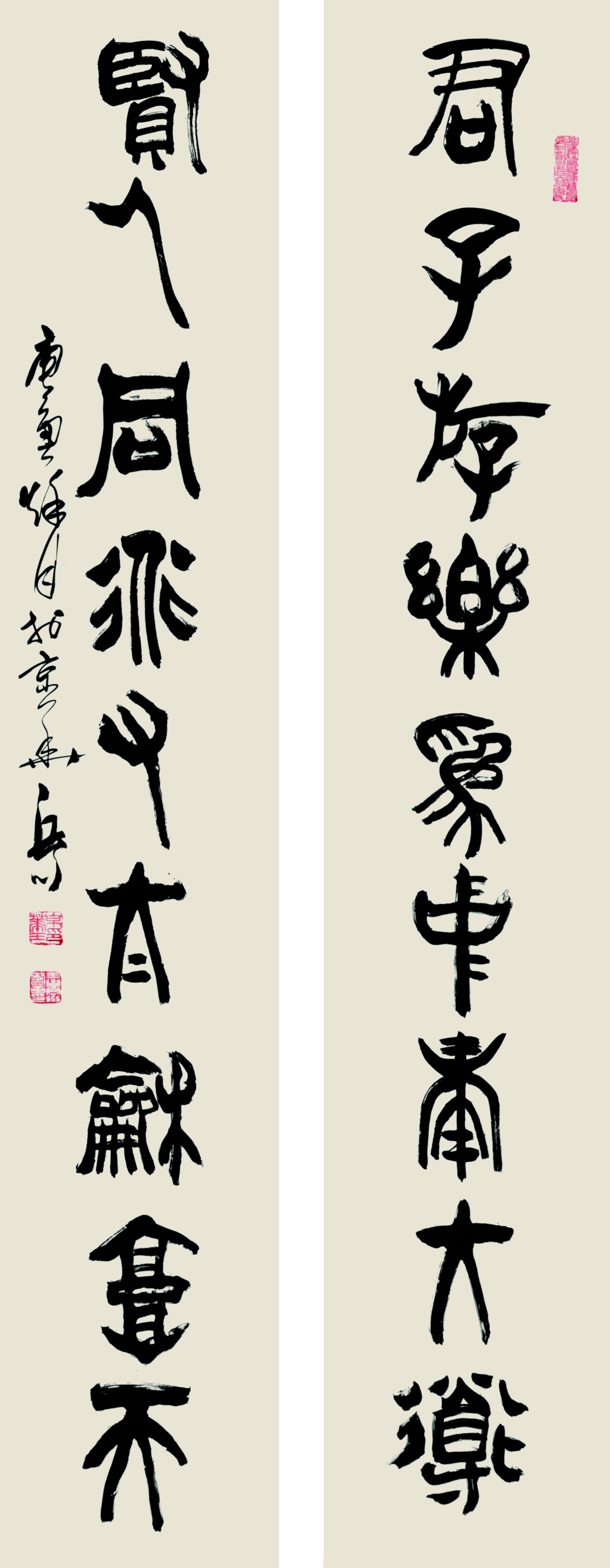 王岳川 自作篆书对联 65cm×380cm 2010年